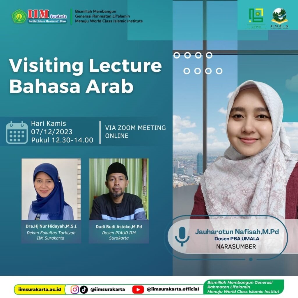 Prodi Pendidikan Islam Anak Usia Dini IIM Surakarta Gelar Visiting Lecture Mata Kuliah Bahasa Inggris Anak Usia Dini Surakarta, 22 Mei 2024 – Program Studi Pendidikan Islam Anak Usia Dini (PIAUD) Institut Islam Mambaul Ulum Surakarta (IIM Surakarta) kembali menyelenggarakan Visiting Lecture secara daring dalam mata kuliah Bahasa Inggris Anak Usia Dini. Kegiatan ini bertujuan […]